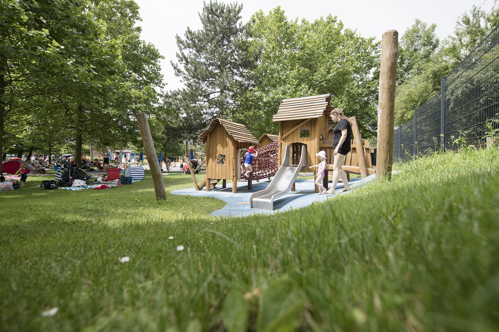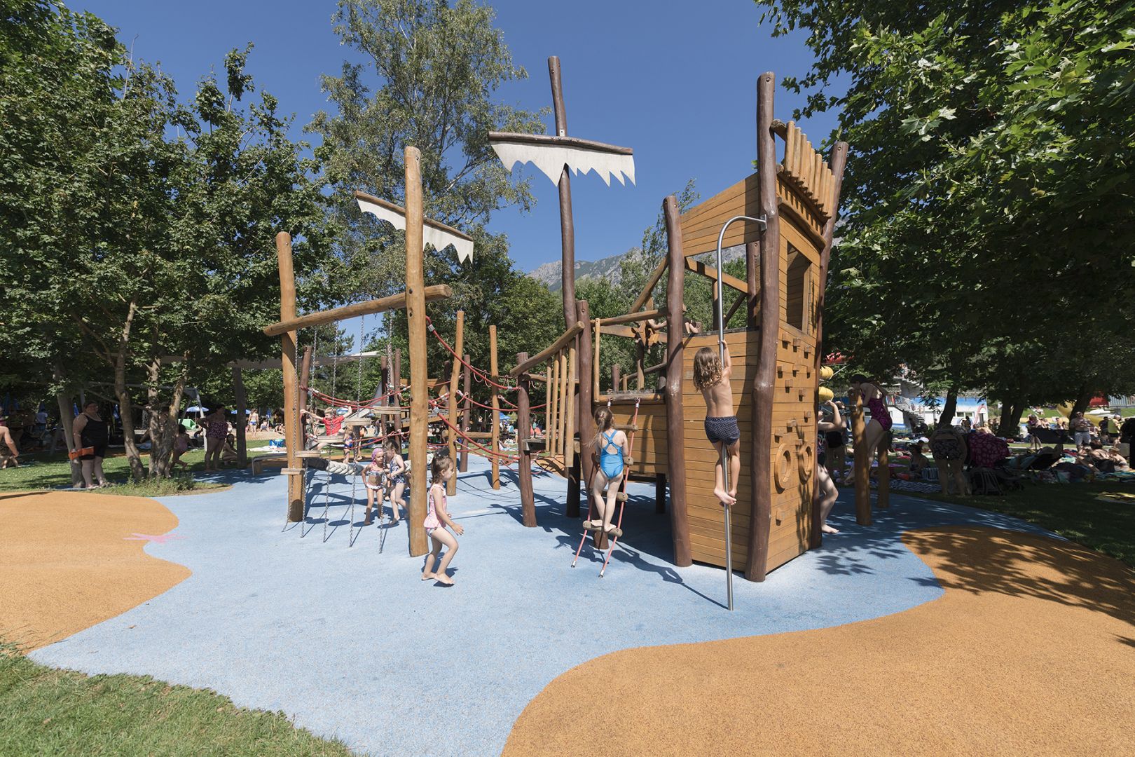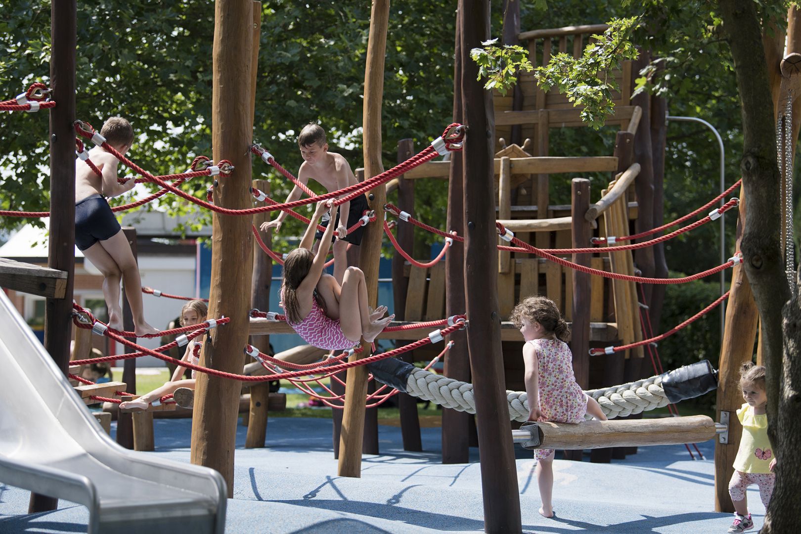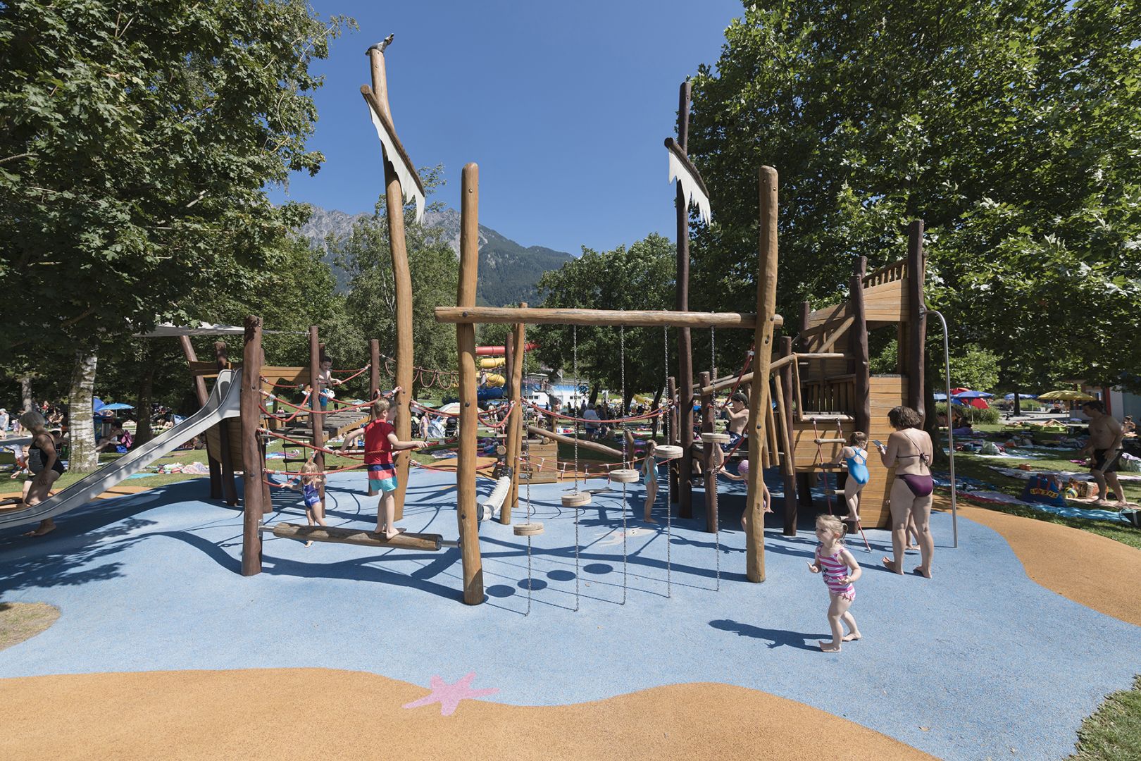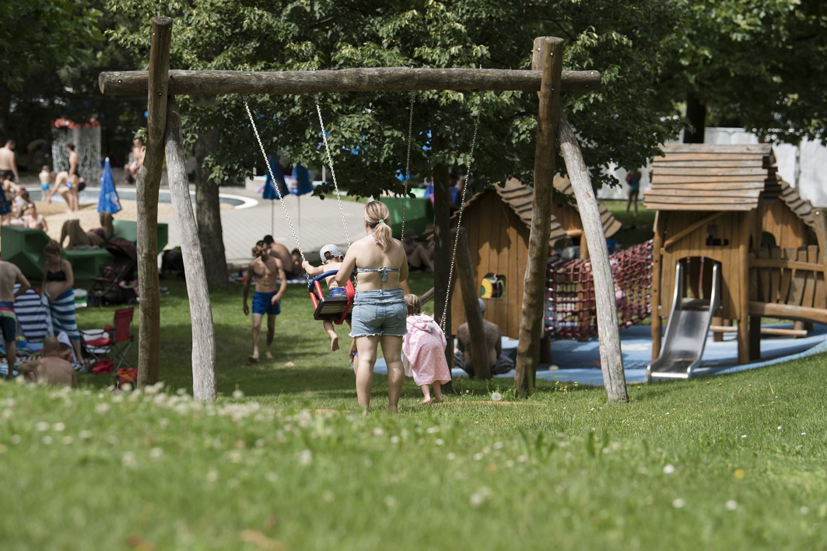 Im Familienbereich neben dem Planschbecken befinden sich schön gestaltete Spielplätze für alle kleinen Gäste.