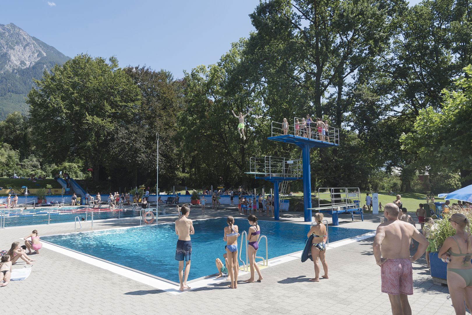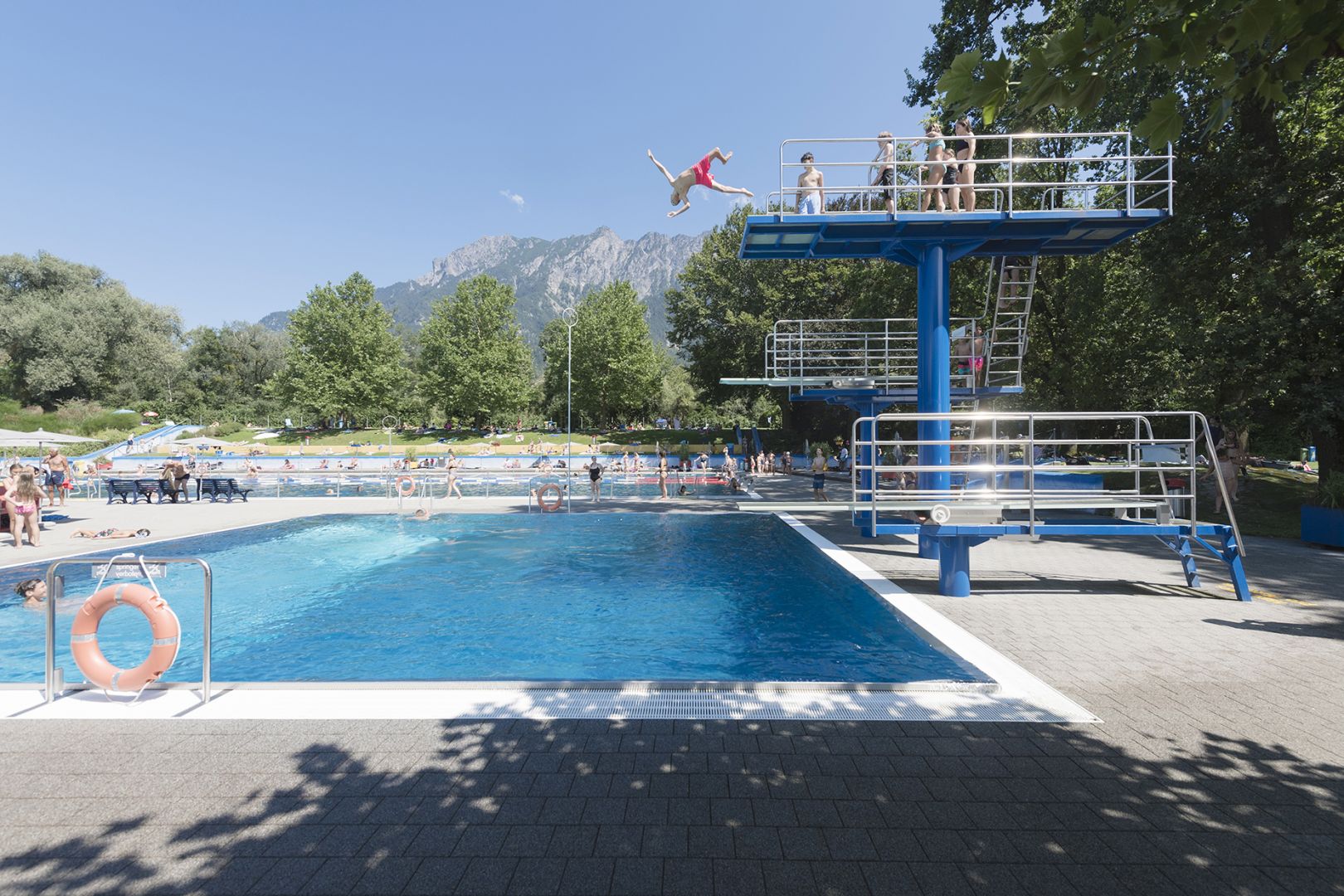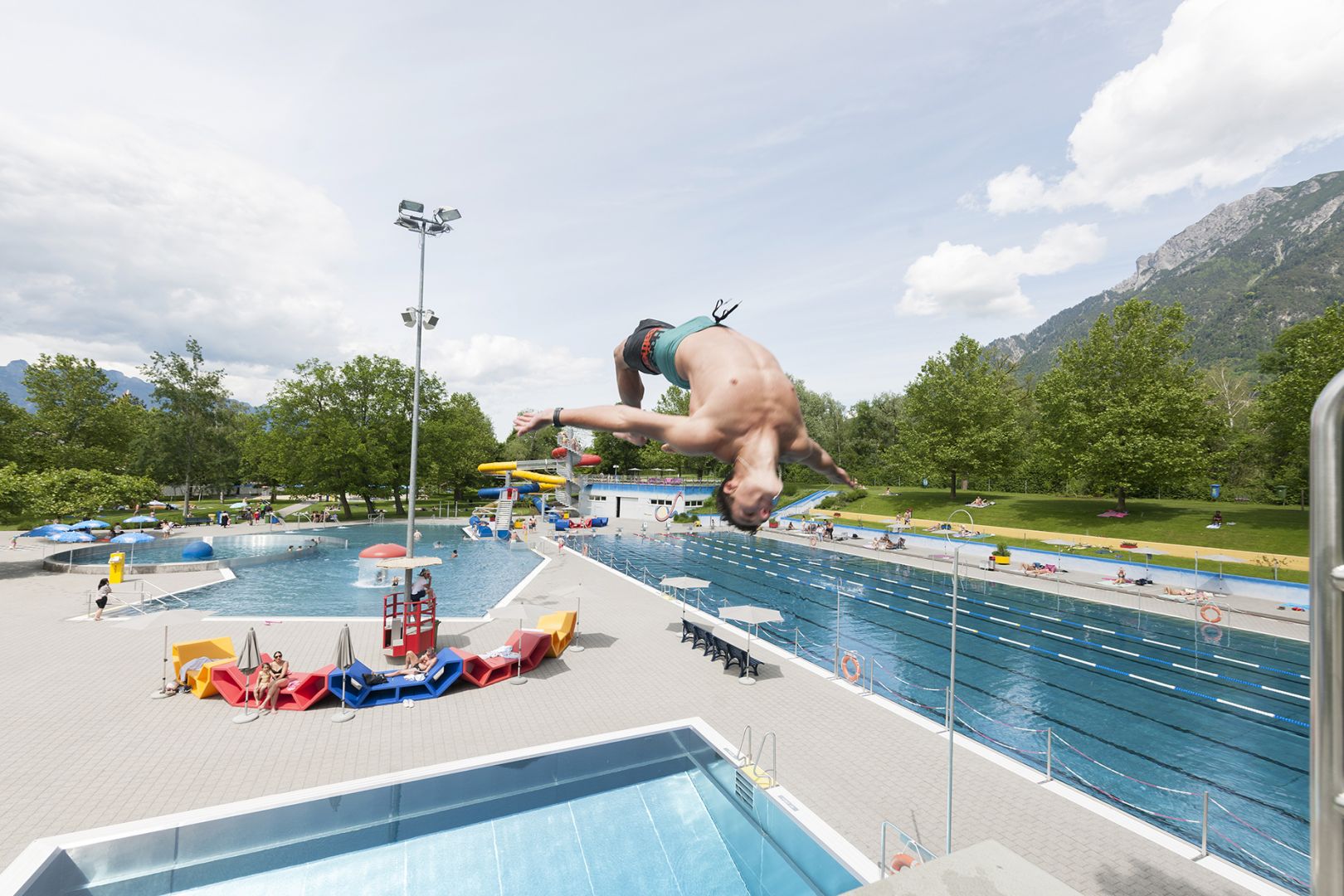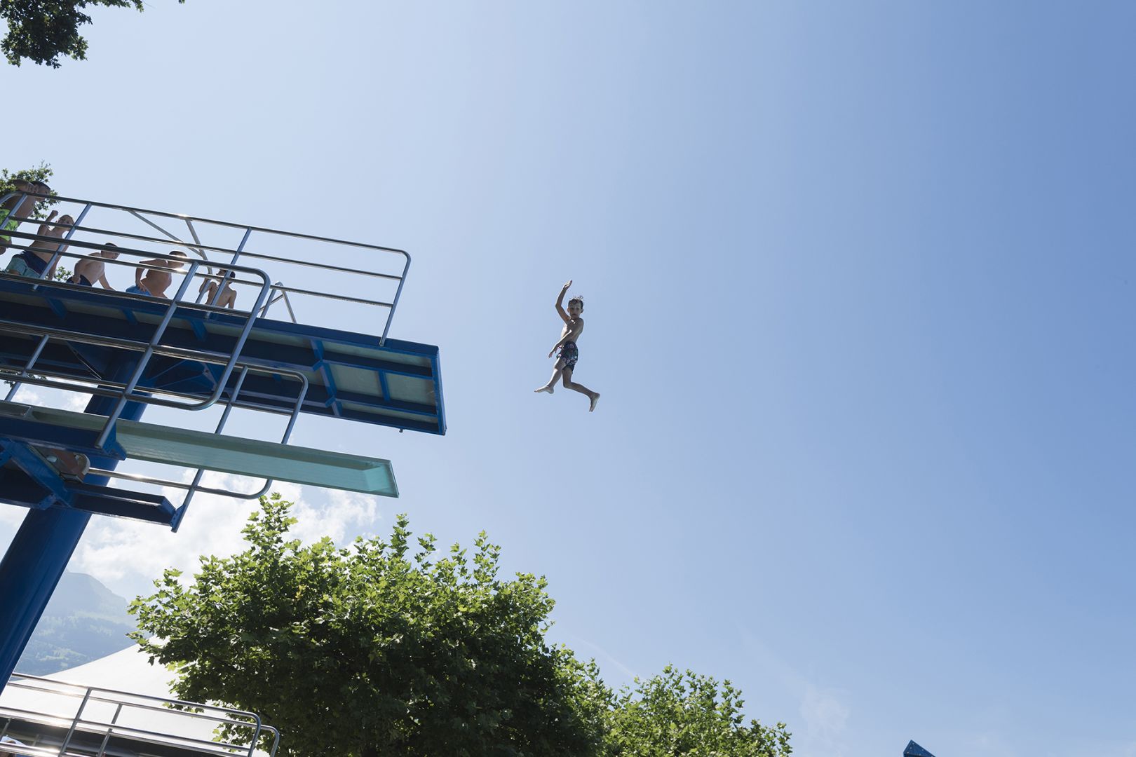 Wagemutige können im Springerbecken von einem bis zu fünf Metern ins Becken springen.