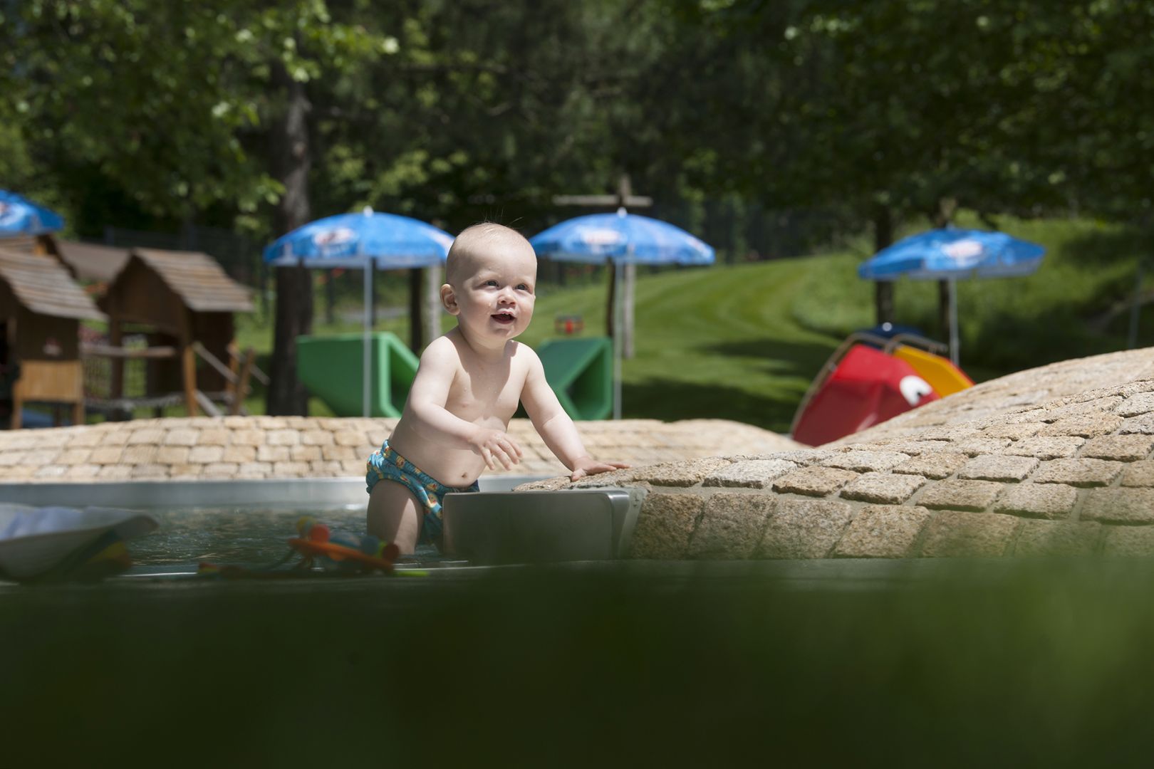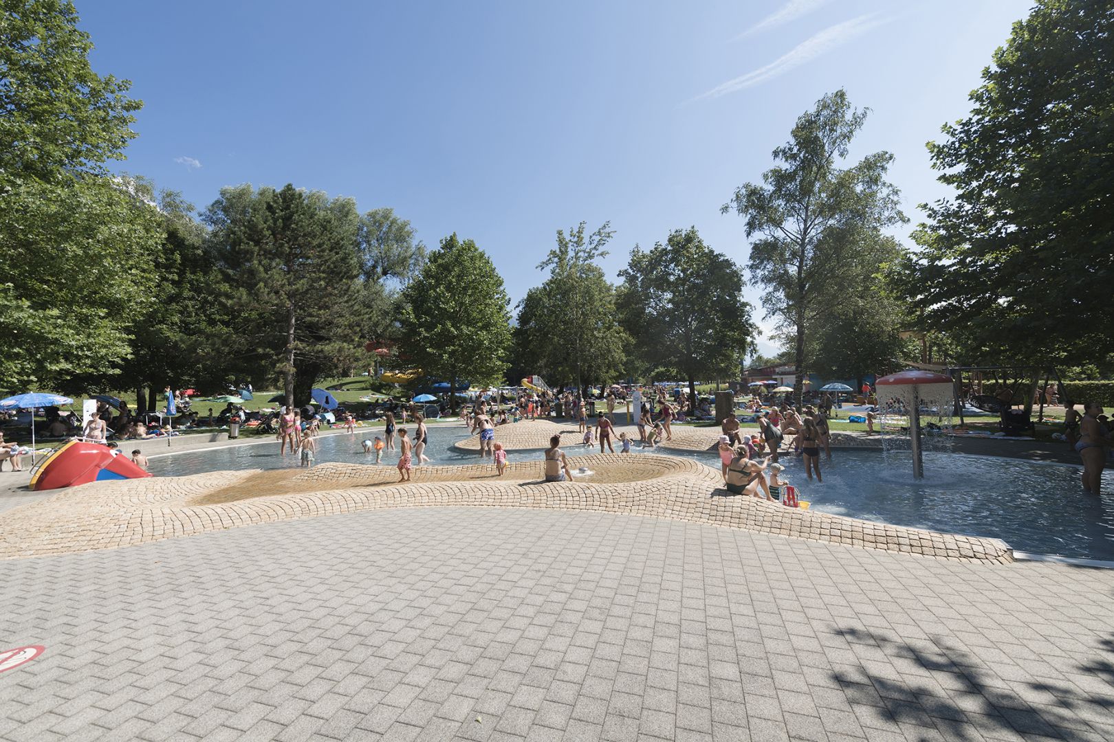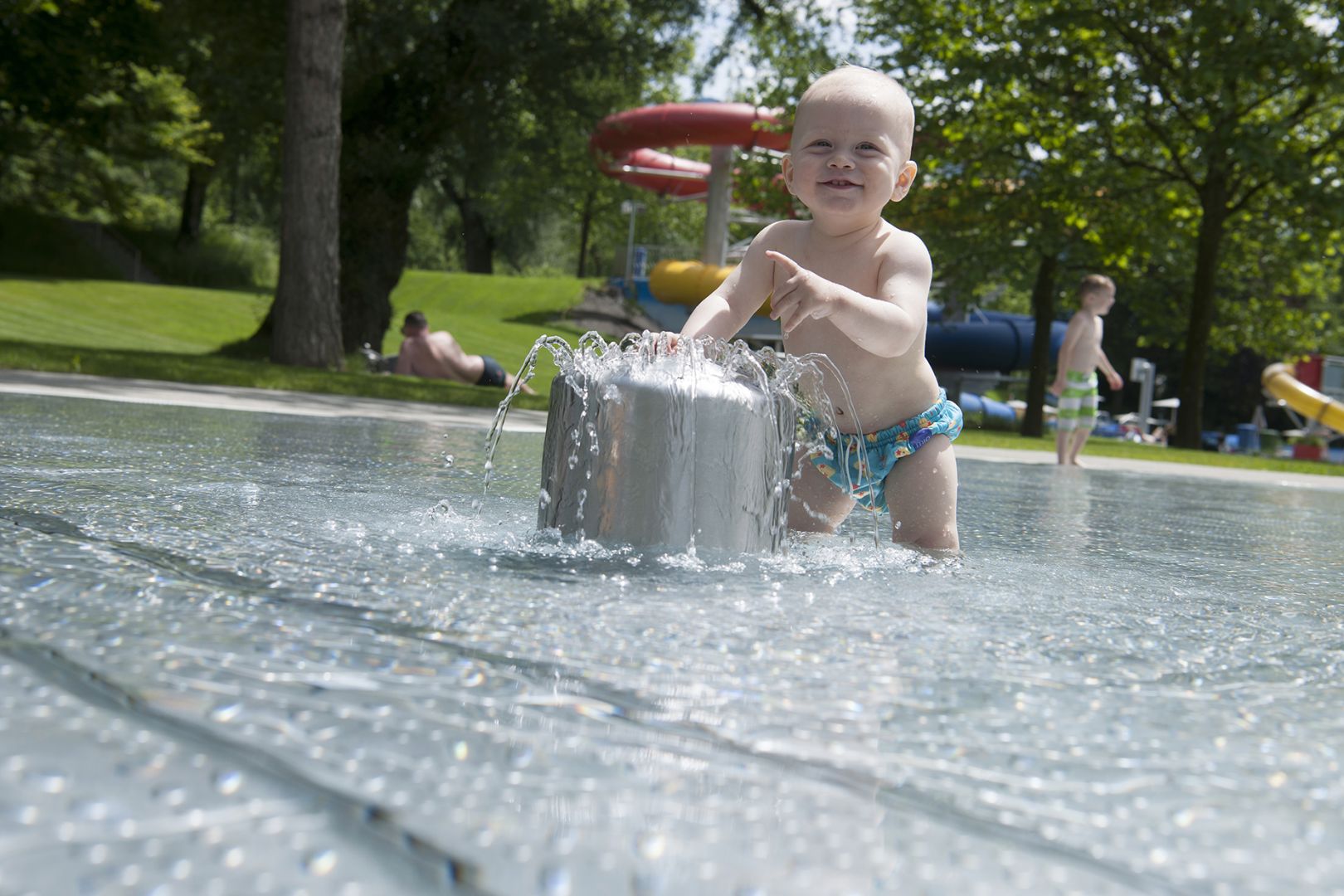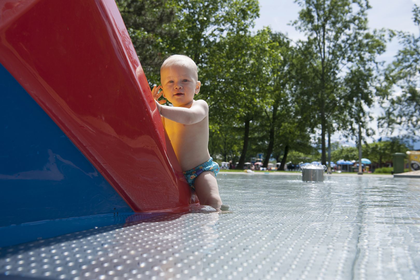 Kleine Besucherinnen und Besucher fühlen sich im Kinderbecken wohl. Unter der Aufsicht ihrer Begleitpersonen lässt es sich hier herrlich plantschen.