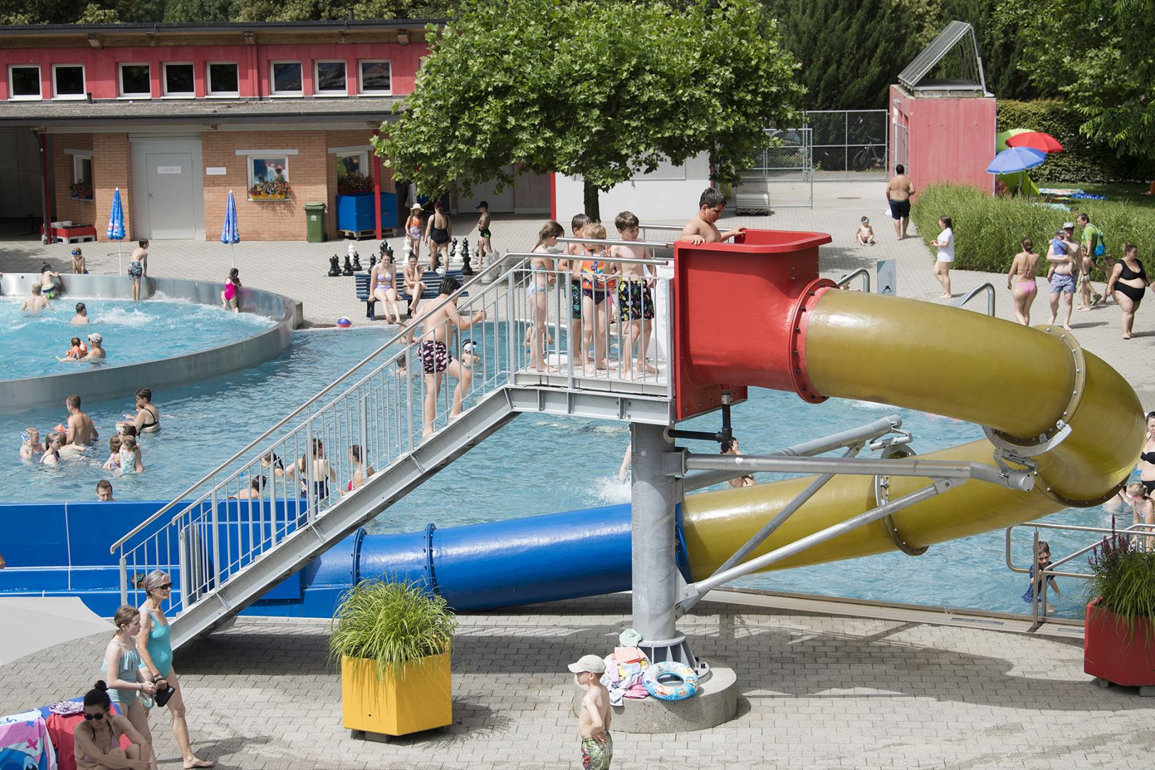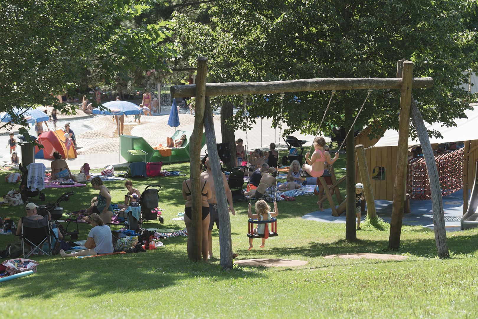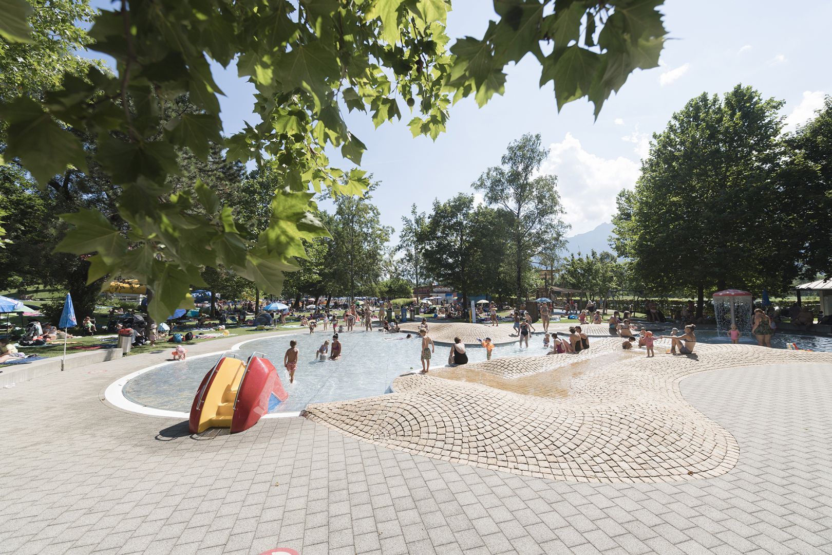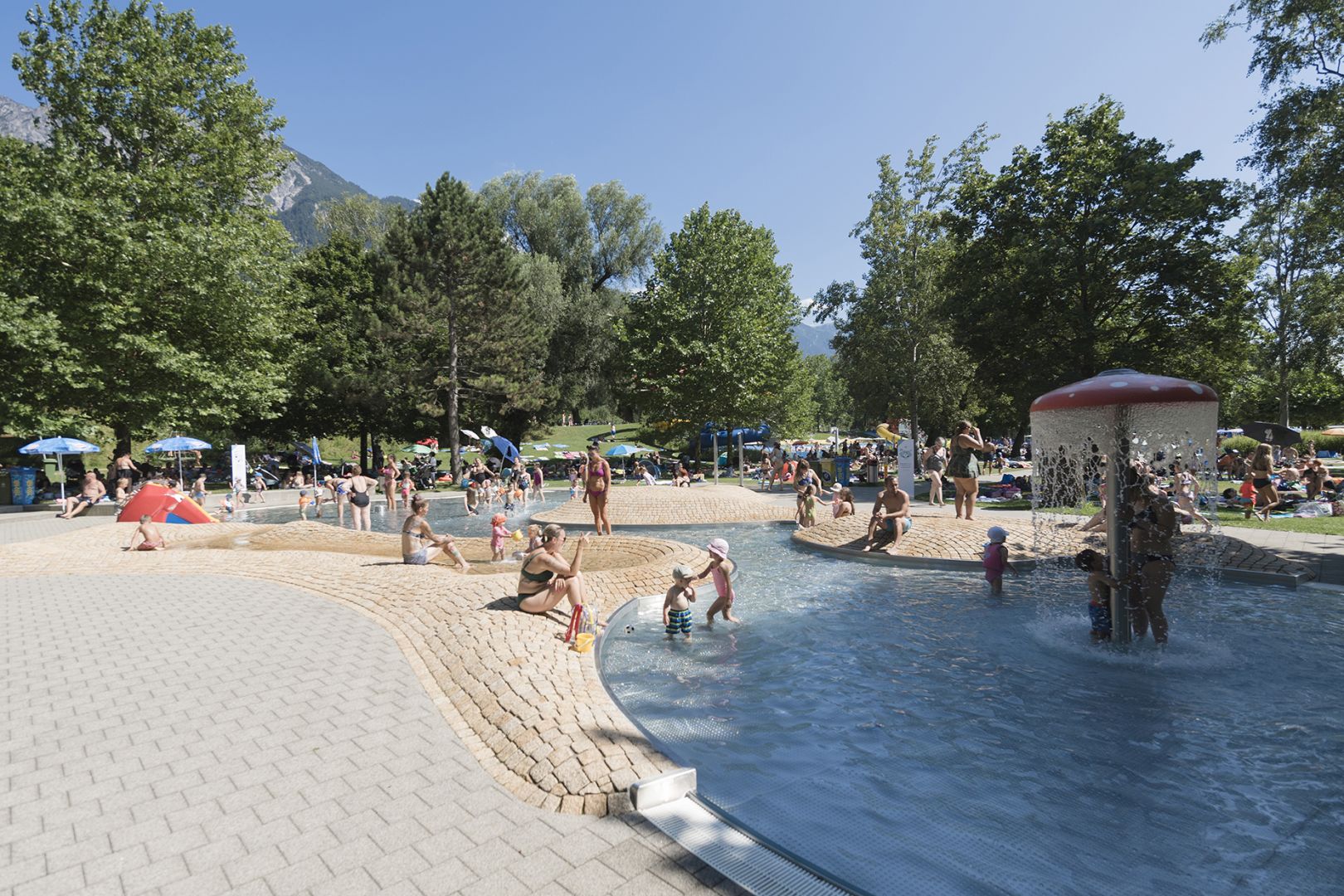 Kleine Besucherinnen und Besucher fühlen sich im Kinderbecken wohl. Unter der Aufsicht ihrer Begleitpersonen lässt es sich hier herrlich plantschen.