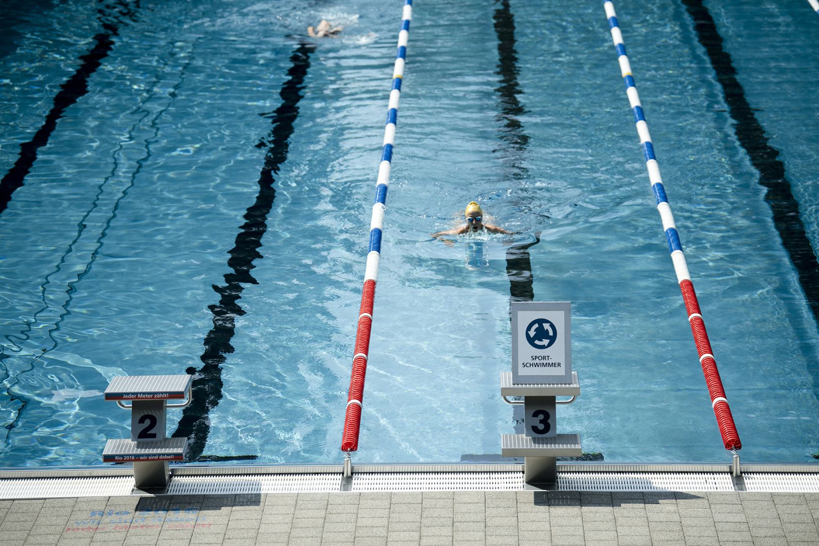 Gemütliche oder kraftintensive Längen werden im Sportbecken zurückgelegt. Oft messen sich dort auch Hobbyschwimmer/innen untereinander.