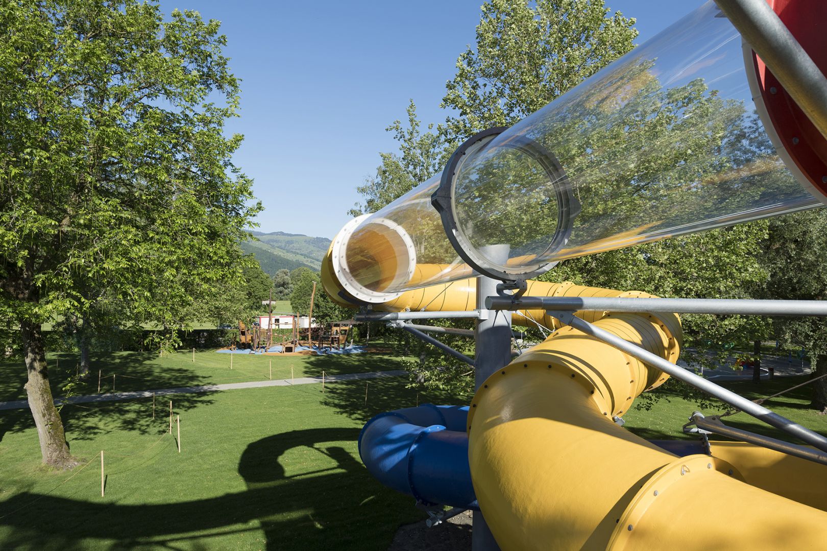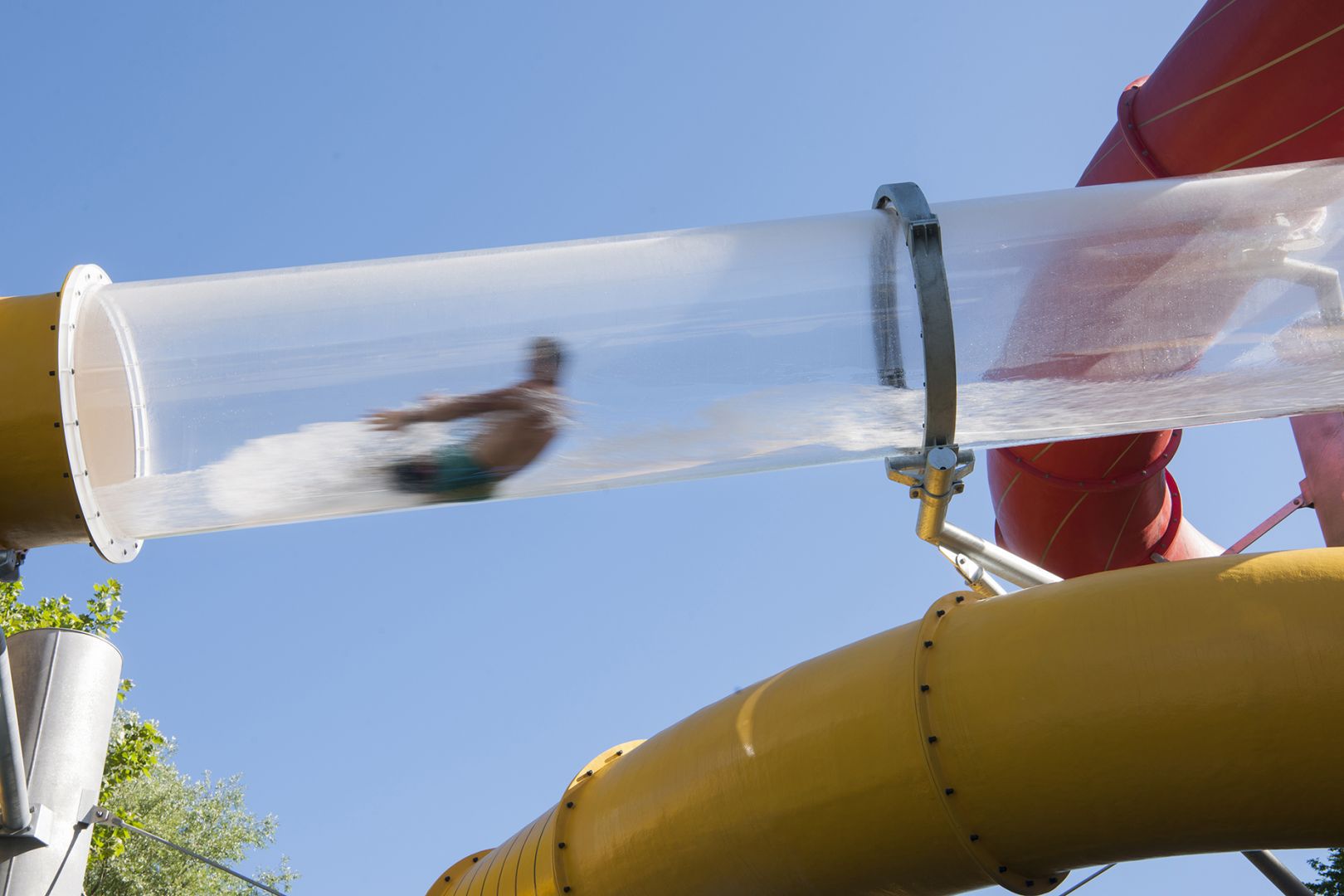 Drei Rutschbahnen sorgen für einen besonderen Badespass: Eine mehr als 100 Meter lange Röhrenrutsche, eine kleinere Rutschbahn im Erlebnisbecken und eine Kinderrutsche gilt es zu entdecken.